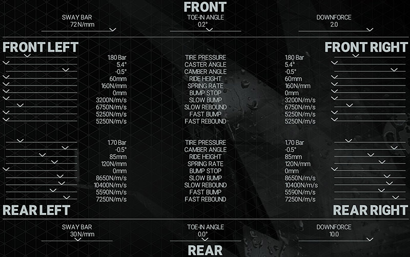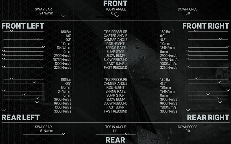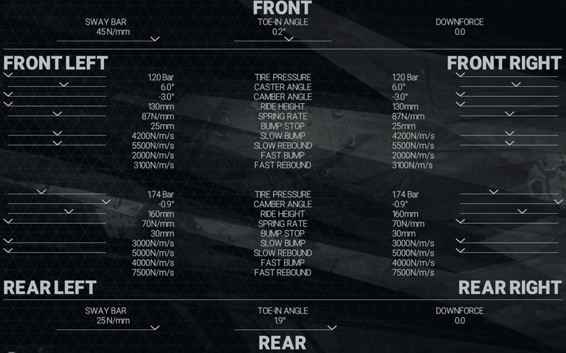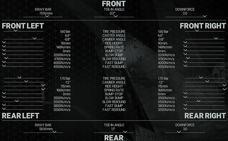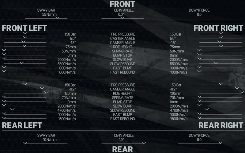 Project CARSはレーシングシミュレーターなので、車に対して非常に細かなセッティングが可能であり、