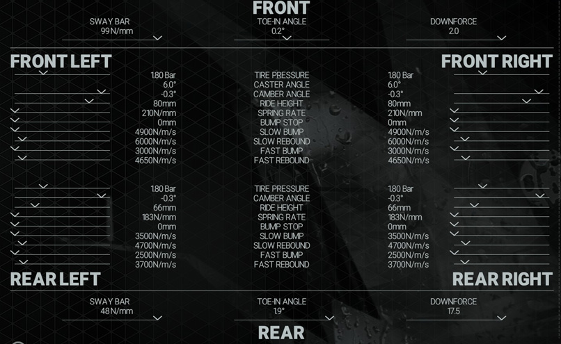 デフはLimited Slip Acceleration Lockが20で他は最弱にする)