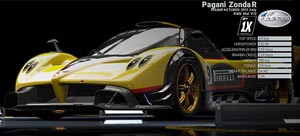 Pagani Zonda R (強アンダー車なので前下りにしてサスを弱めて接地感を出す。キャンバー最適化。