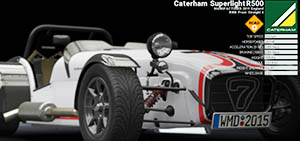 Caterham SuperLight R500 (超軽量車なのでサスはなるべく柔らかく、キャンバーは少なめでやや後ろ下がり。